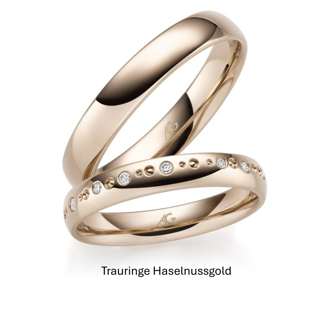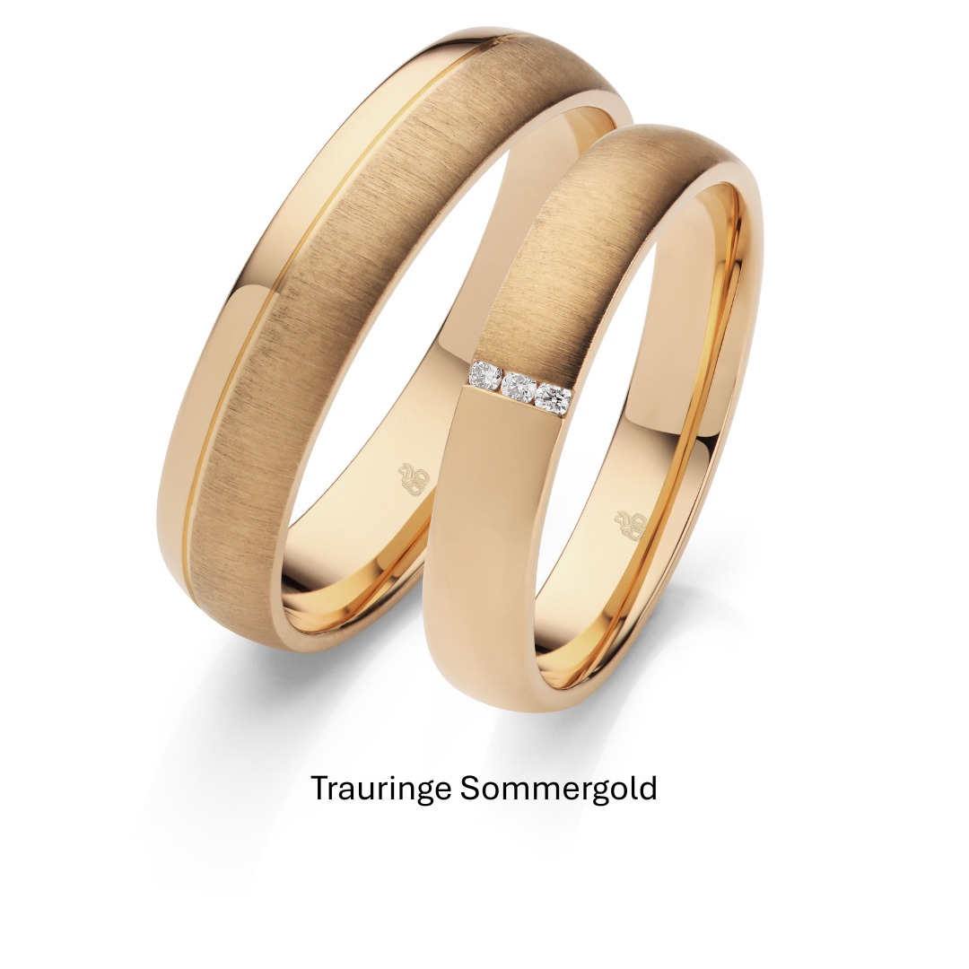 Unsere besonderen Goldtöne sind ein echtes Highlight und machen Ihre Trauringe unverwechselbar. Die Nuancen Elfenbeingold, Haselnussgold, Herbstgold, Mittelgold sowie Sommergold stammen von den renommierten deutschen Trauringmanufakturen August Gerstner und Roland Rauschmayer und sind in dieser Vielfalt nur bei uns zu entdecken.